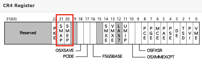 - SMEP와 SMAP의 적용 여부는 CR4 레지스터에 명시되어 있다.